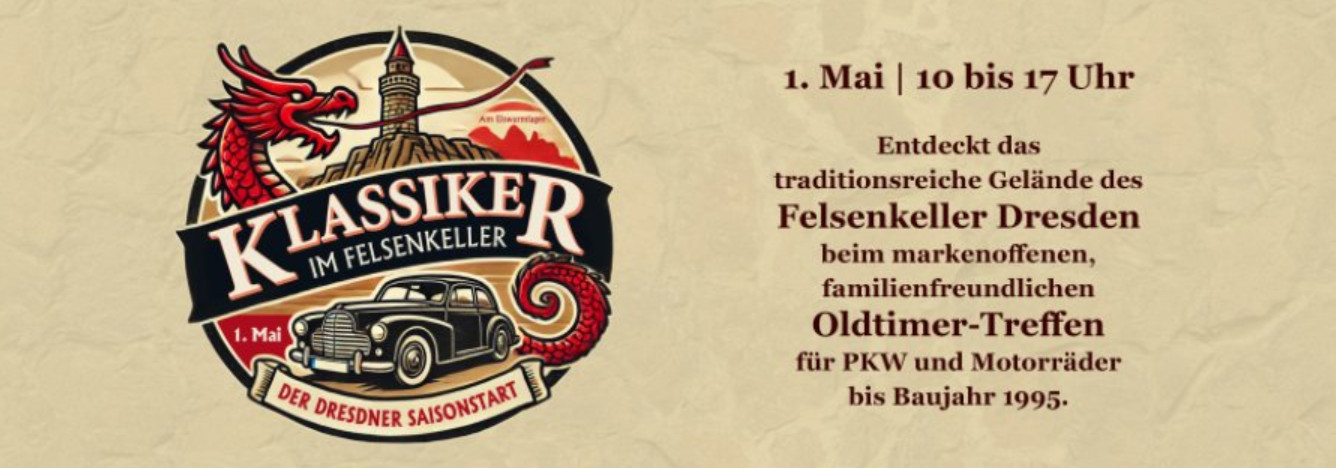 Seit 2025 realisieren wir ein weiteres Eventprojekt im Oldtimer-Bereich: Klassiker im Felsenkeller - Der Dresdner Saisonstart am 1. Mai 2026.